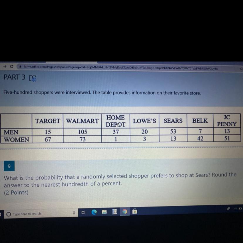 Notice that this is compounded probability, since first, we know that the selected person is a woman, and then we need to find the probability of being a woman selecting Target for shopping.