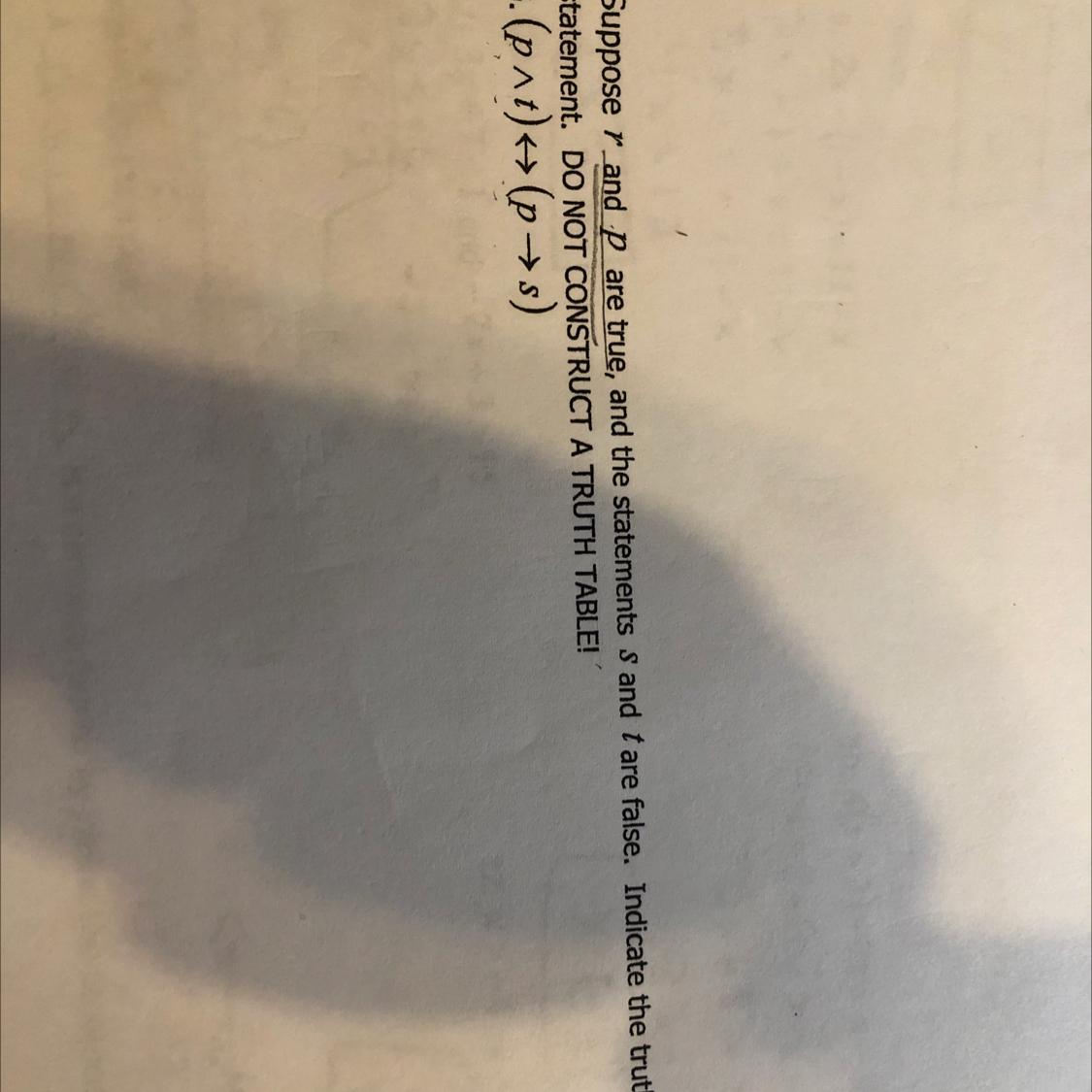 (p ∧ t) ↔ (p -> s) is true if both are true or both are false.