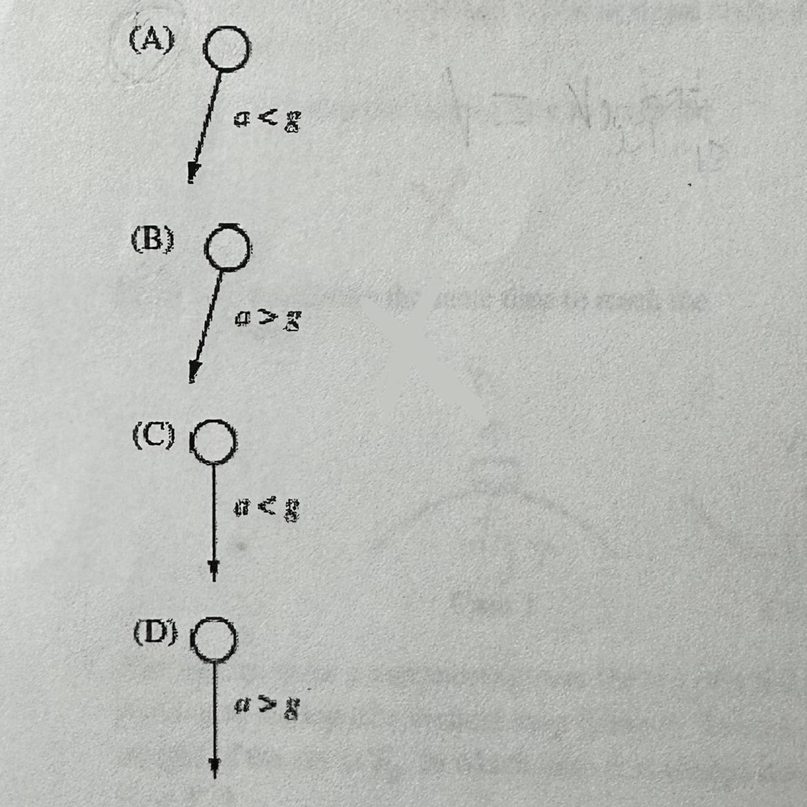 a > g , is the best shows the magnitude a and the direction of the ball's acceleration at time.