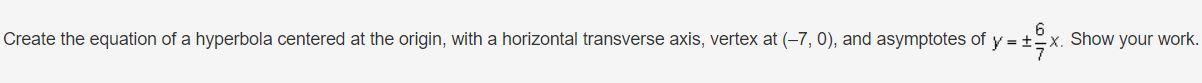 The vertex of this hyperbola is set in the point (-7,0). We could use the following equation to find the value of a: