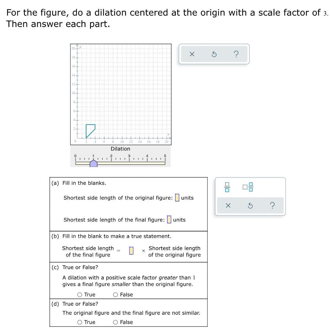 (a) The shortest side of the original figure is the one on the right of the figure, and it is 1 unit long. Note that for both figures, the shortest side is in the same position, so the shortest side of the final figure is 3 units long.
