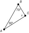 The angles in a triangle add up to 180°. So if one angle is 70° and the other angle is 30°, then ∠BCA=180°-70°-30°. This can be simplified to 180°-100° which equals 80°