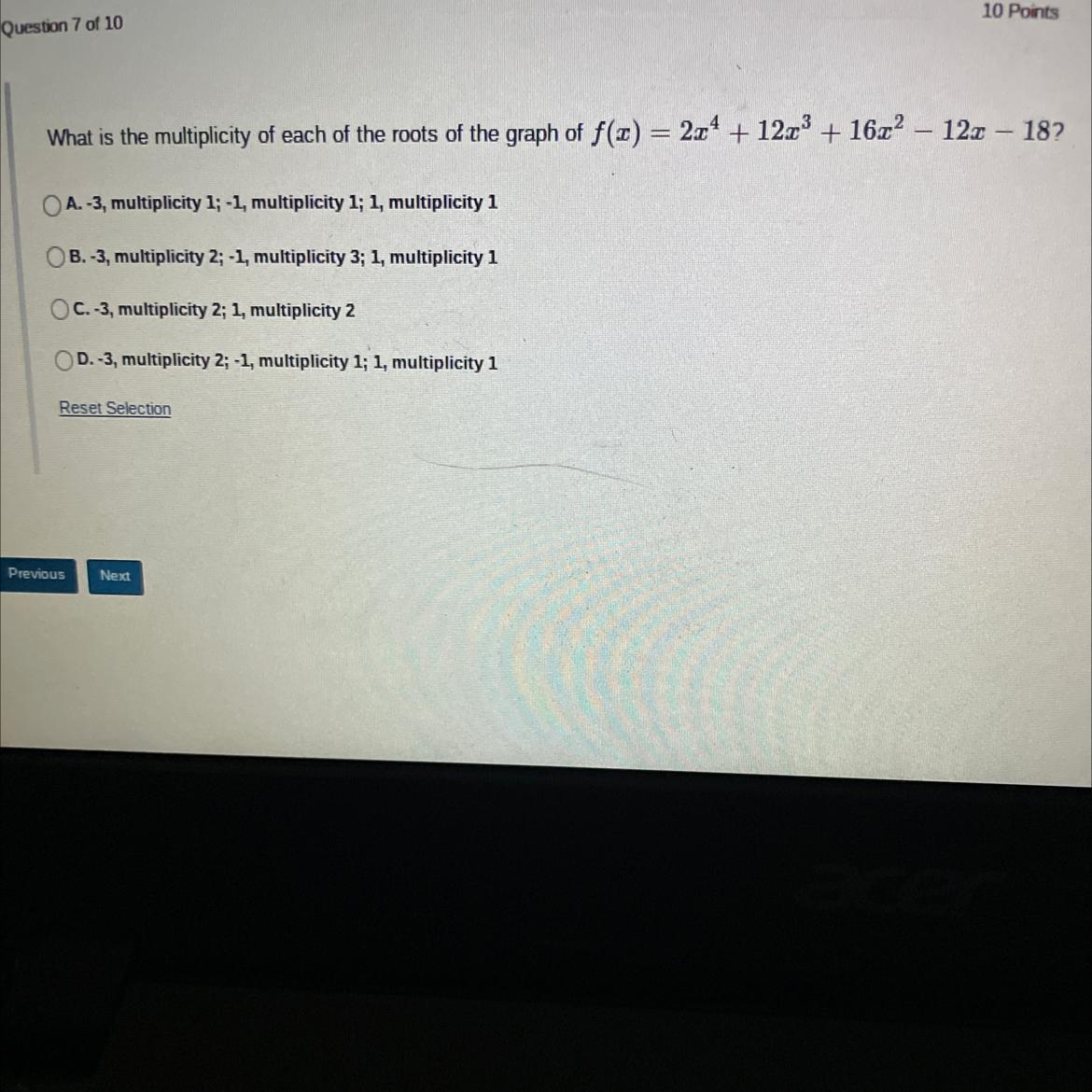 Thus, the multiplicity of each of the roots of the graph is;