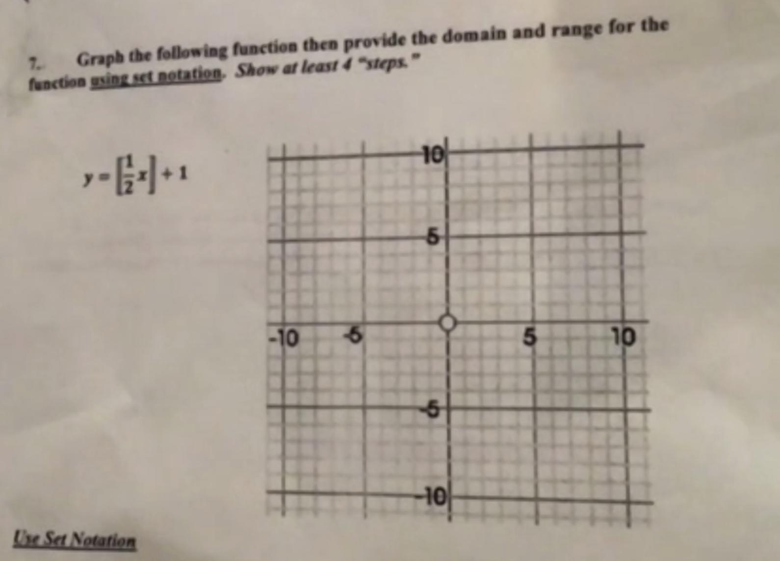 The objective is to plot the graph and find the domain and range in set notation.