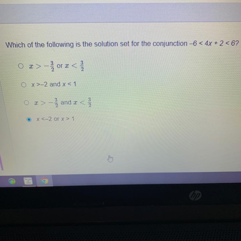 Therefore, the answer is CHOICE B: x > -2 and x < 1 or -2 < x < 1