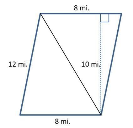 You can divide the parallelogram into two congruent triangles with base = 8 mi and height = 10 mi.