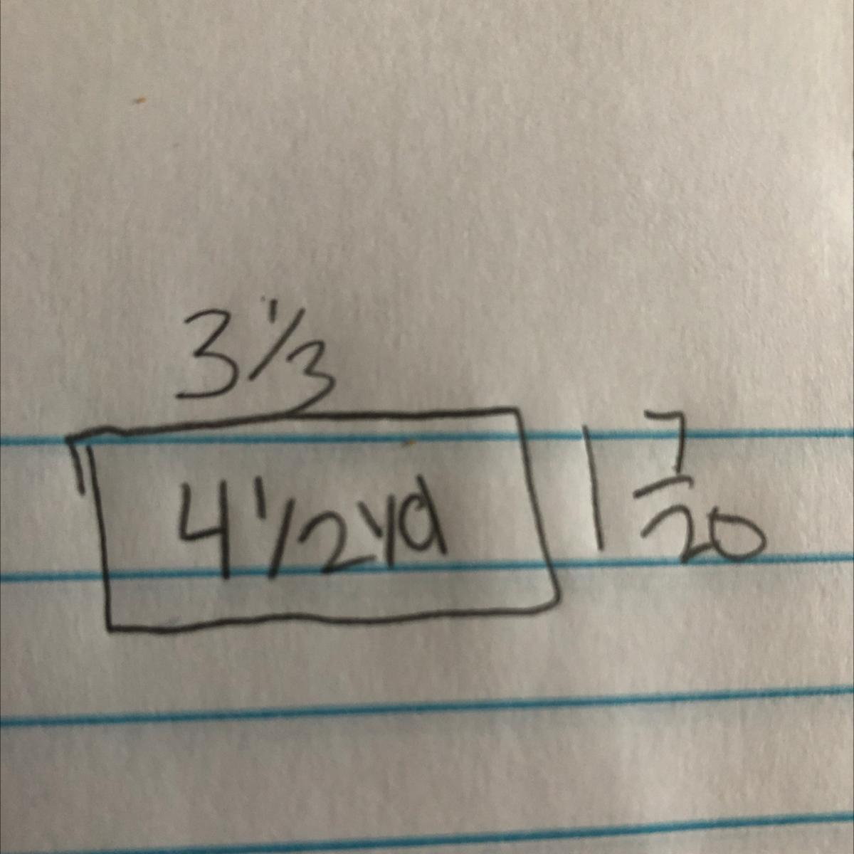 This is the answer because 4 1/2yd divided by 3 1/3 is equal to 1 7/20
