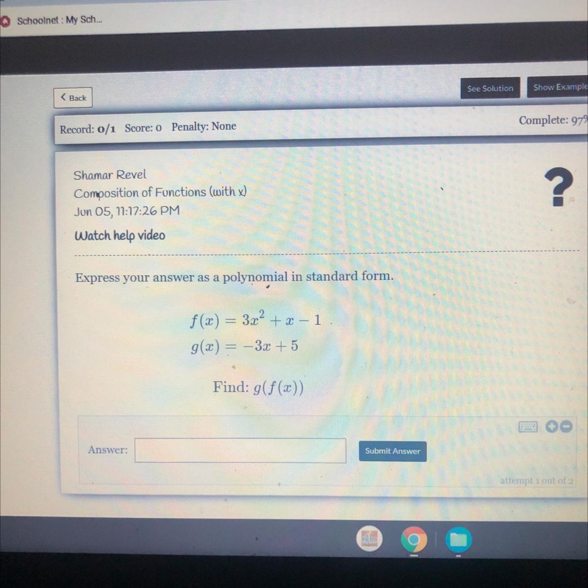 The form given for your answer has parameters 'a', 'h', and 'k'. The parameter 'a' is the vertical scale factor. Since g(x) is a translation only, that factor is 1. The parameters (h, k) identify the translation (right, up). The translation is 7 units right and 0 units up, so (h, k) = (7, 0).