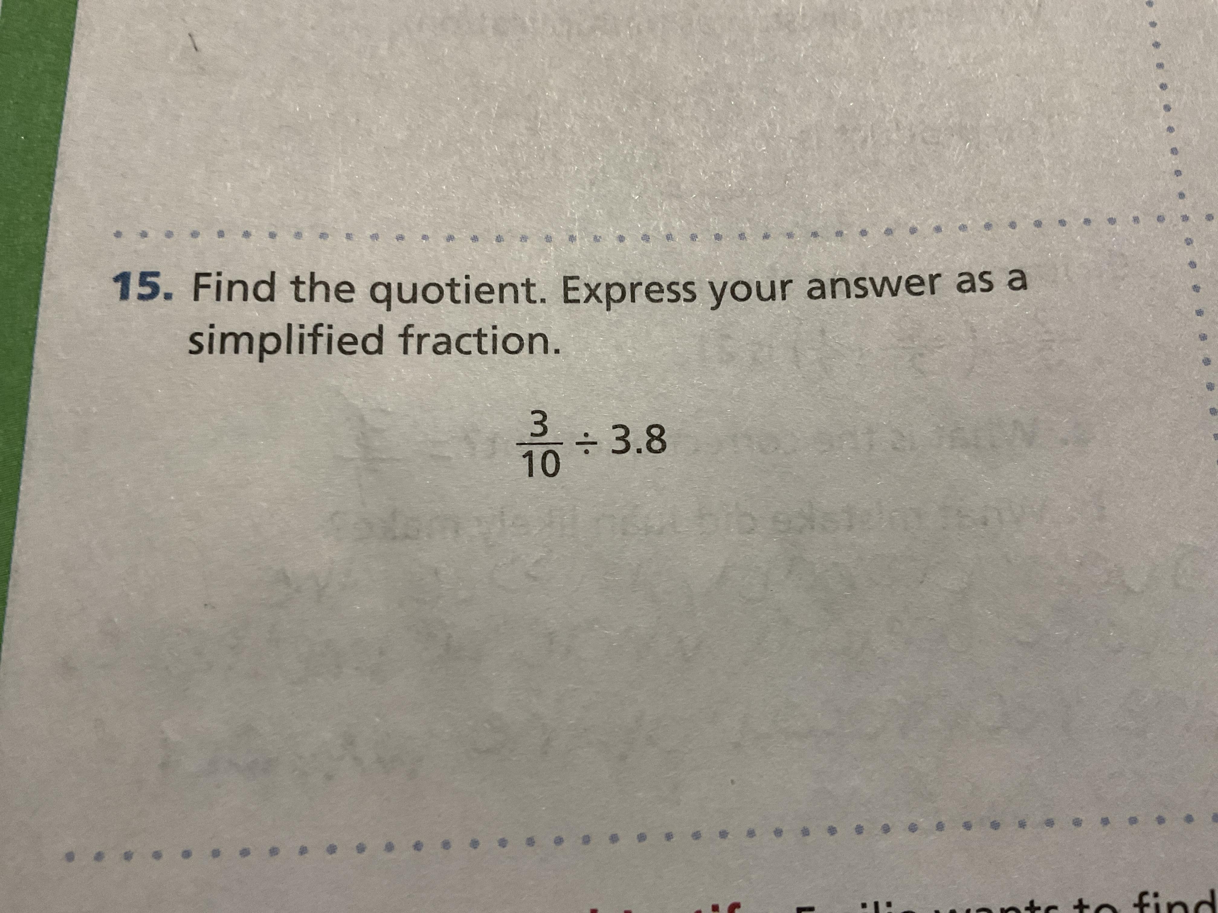 (3/10)/3.8 = (3/10)/(38/10) = (3/10)*(10/38) = 30/380 = 3/38