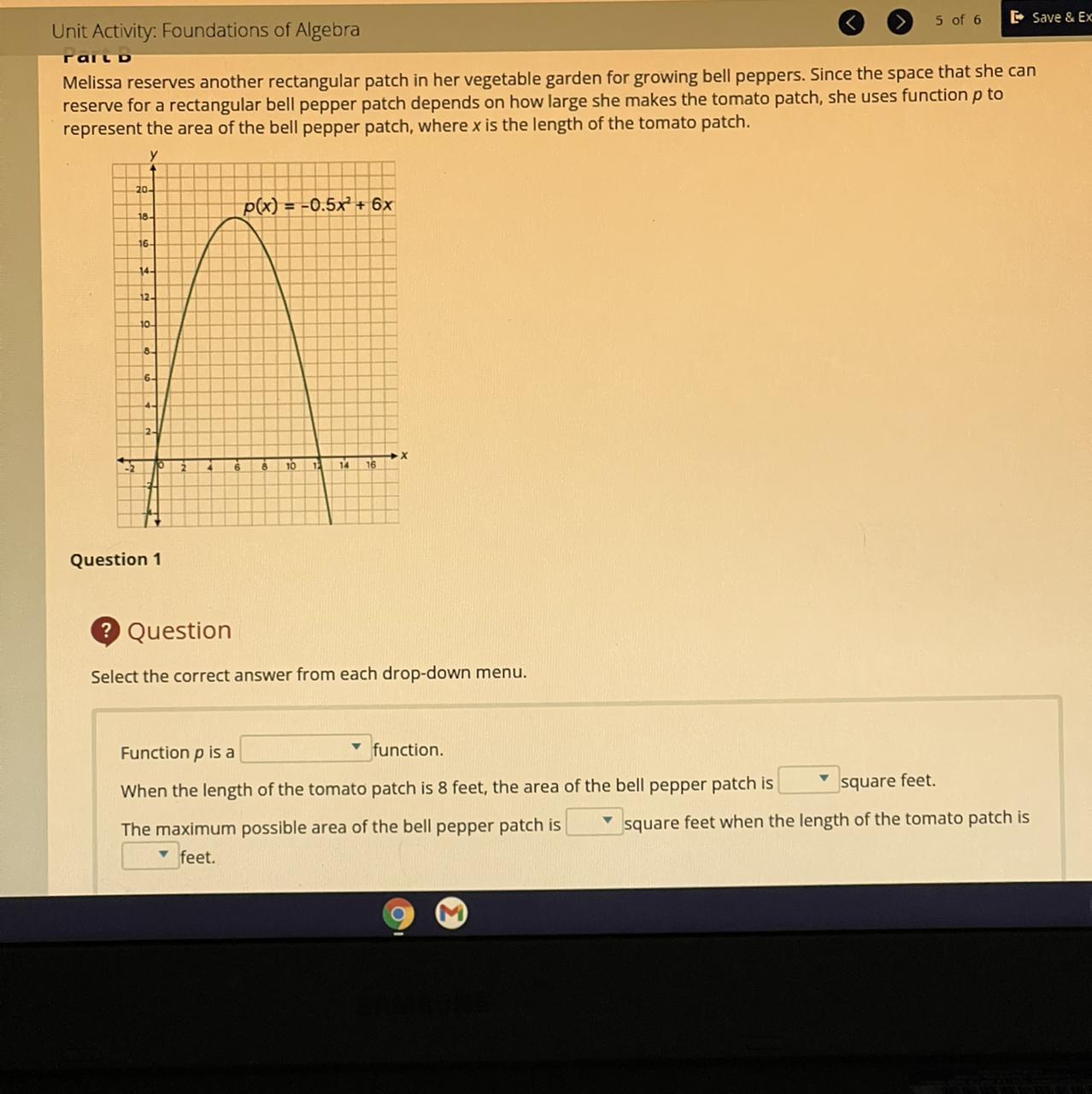 2 - <em>x</em> represents the length of the tomato patch, so if we want the area of the bell pepper patch, we can input x = 8 into the function: