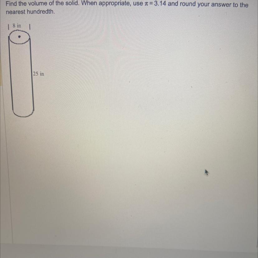 Given: A solid cylinder with diameter 8 inches and 25 inches height.