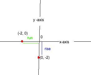 Slope = 0 - (-2) / -2 - 0 = 2 / -2 = -1