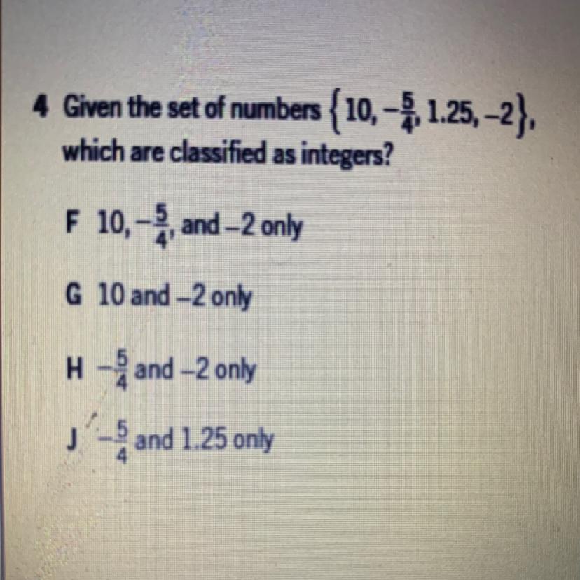 10 and -2 are are integers.