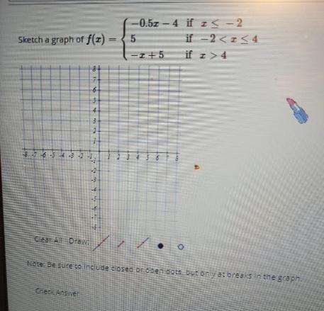 1) graph the line (-0.5x-4) as x less than or equal to -2