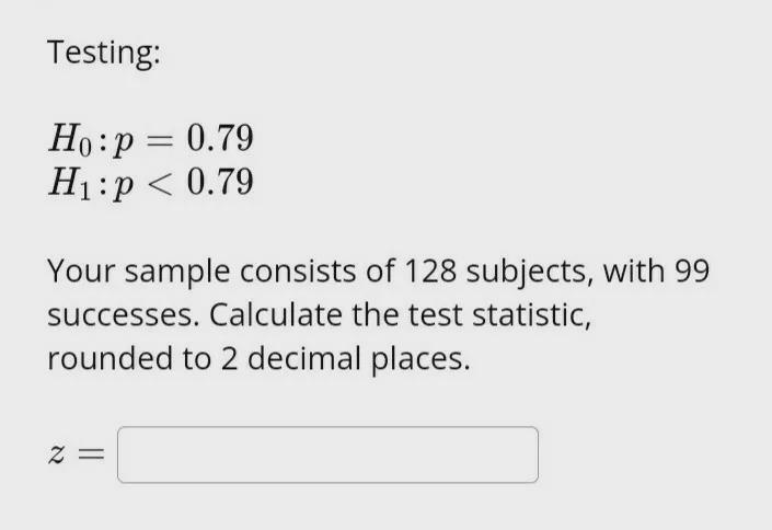 As your testing H0:p=0.79, then you have a two-tailed test.