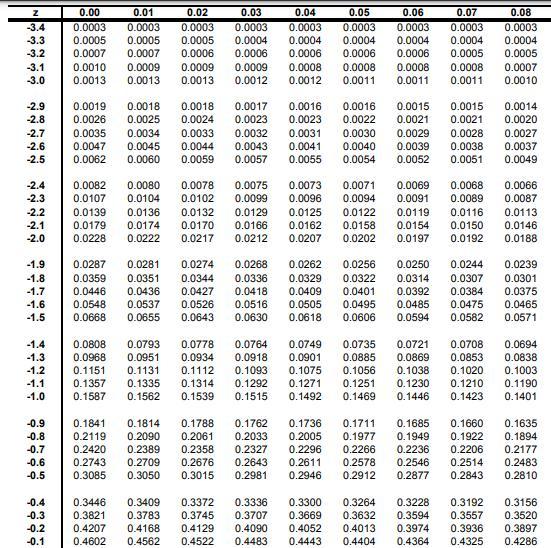 Then, you need to check into the standard normal cumulative table to find at which -z you do have a probability of 0.395. Thus: