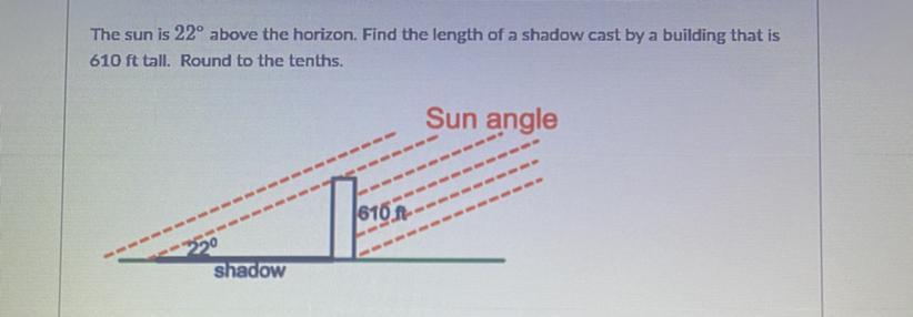 tan(22º) = 610 ft / shadow length