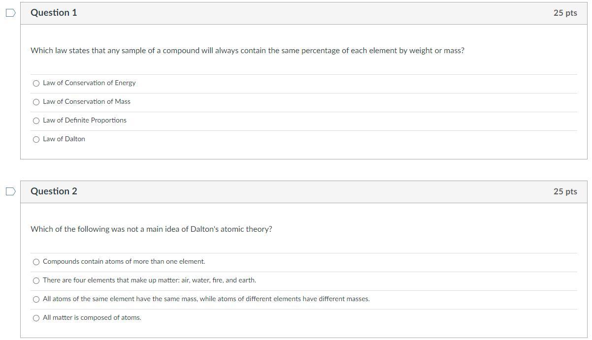 According to Dalton's atomic theory, all matter consists of atoms. The atoms of the same element have the same mass and the atoms of different have different masses and compounds are made of atoms of more than one element.