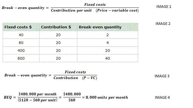 In all of these examples, fixed costs are paid when enough units are produced and sold to generate enough contribution. See image 3