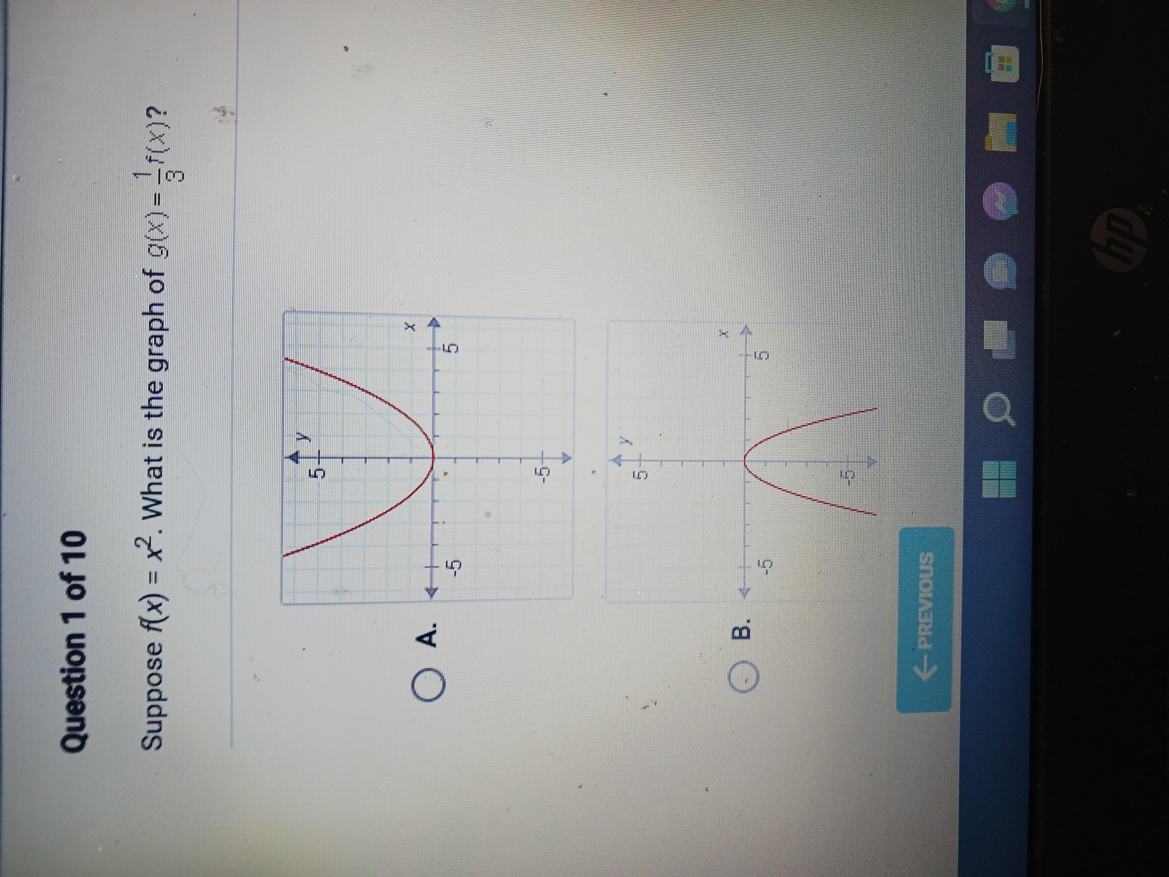 The graph of the function, g(x) = 1/3 f(x), is shown below. The correct option is A