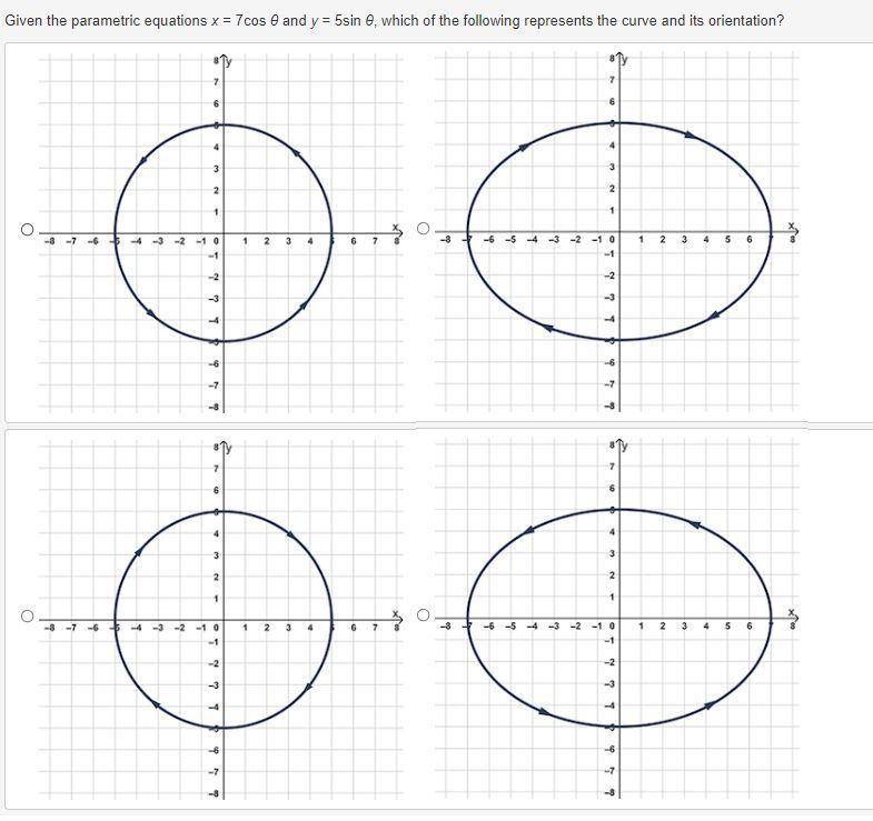 when Θ = 90° or π/2 , then x = 7*cos90° = 7*0 = 0 , and y = 5sin90° = 5*1 = 5