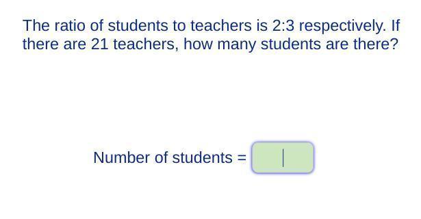 The ratio of students to teachers is 2:3 respectively. If there are 21 teachers, the number of students can be calculated by using unitary method or by proportions.