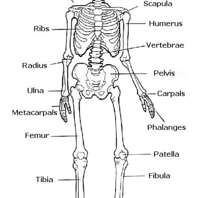 Fibula, tubula, femur, carpals, phalanges , humorous, radius, ulna