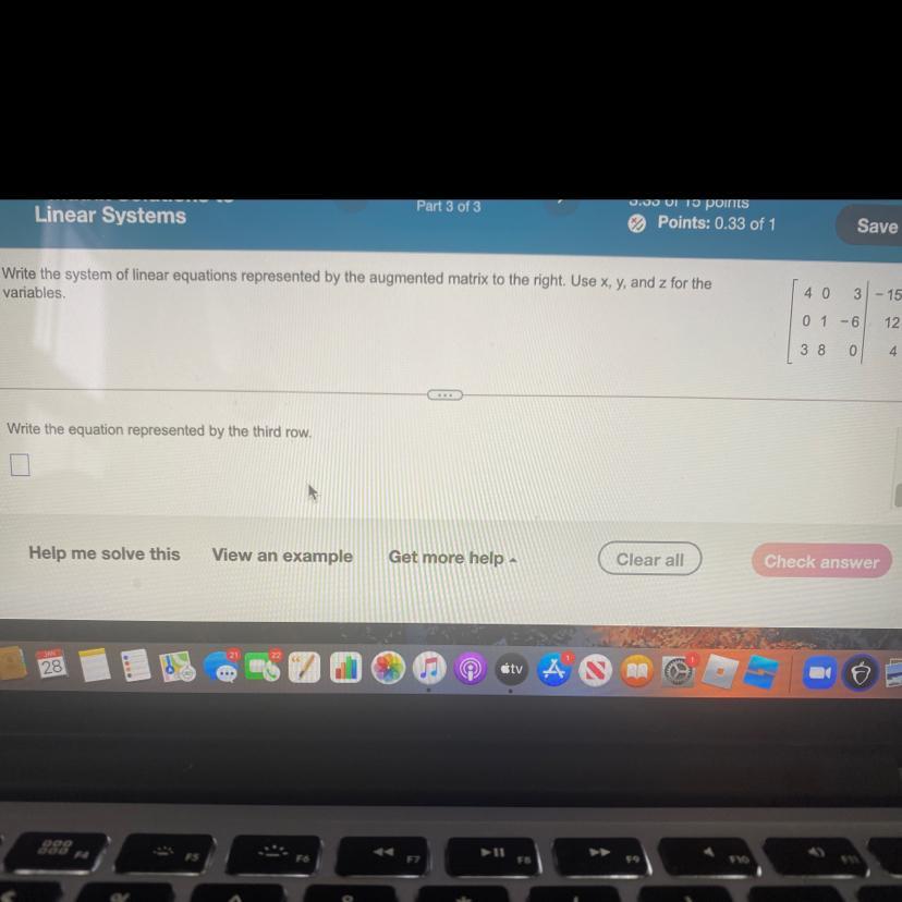 On the third row we have the elements 3 8 0 4, which gives to us the following equation