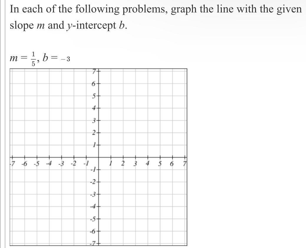 In this case, you have that m=1/5 and b=-3, then, the line equation is: