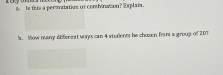 For this case n is 20 (the number o students) and x is 4 (the number of representatives):