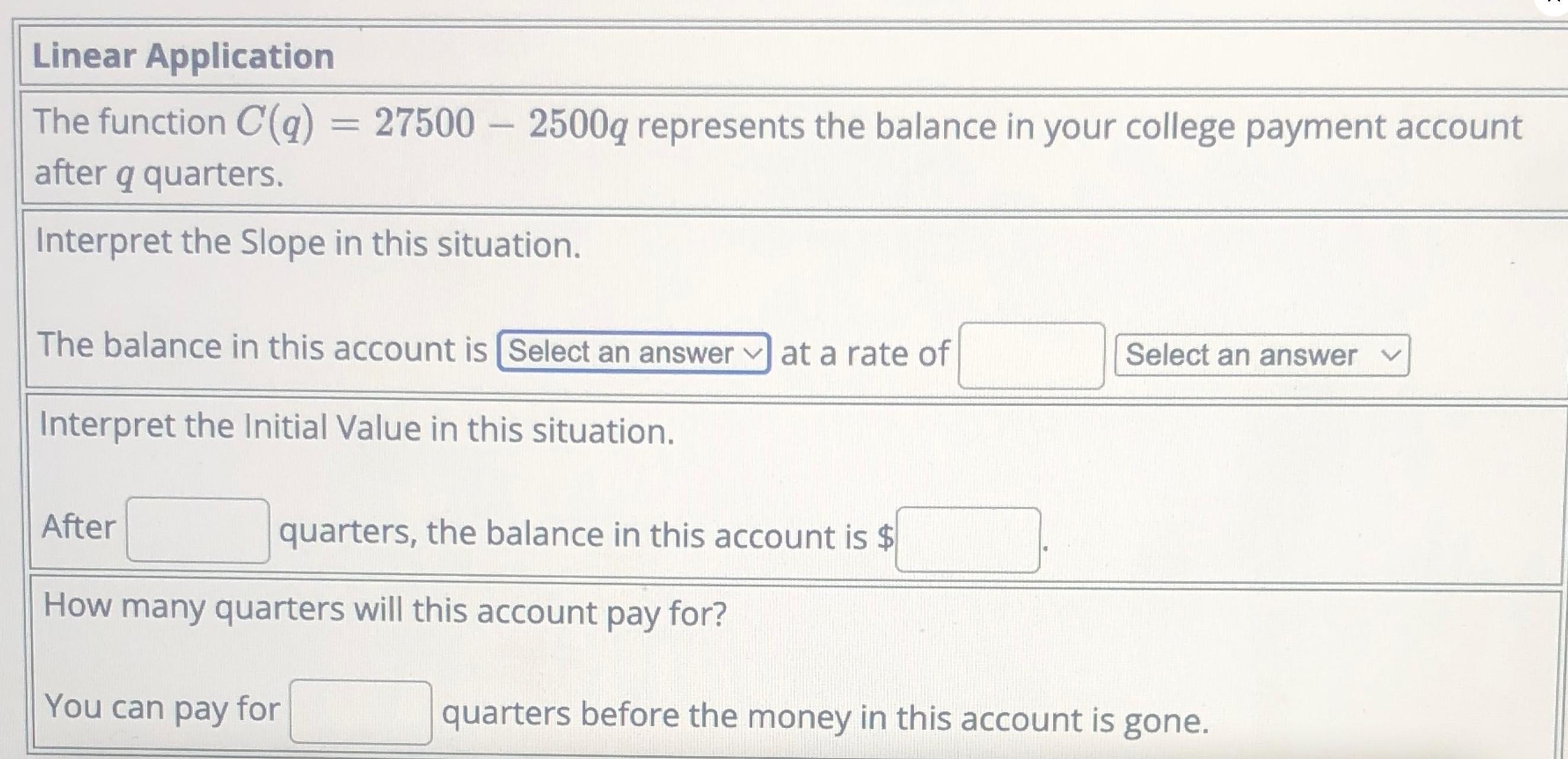 The balance in this account is decreasing at the rate of 2500 dollars per quarter