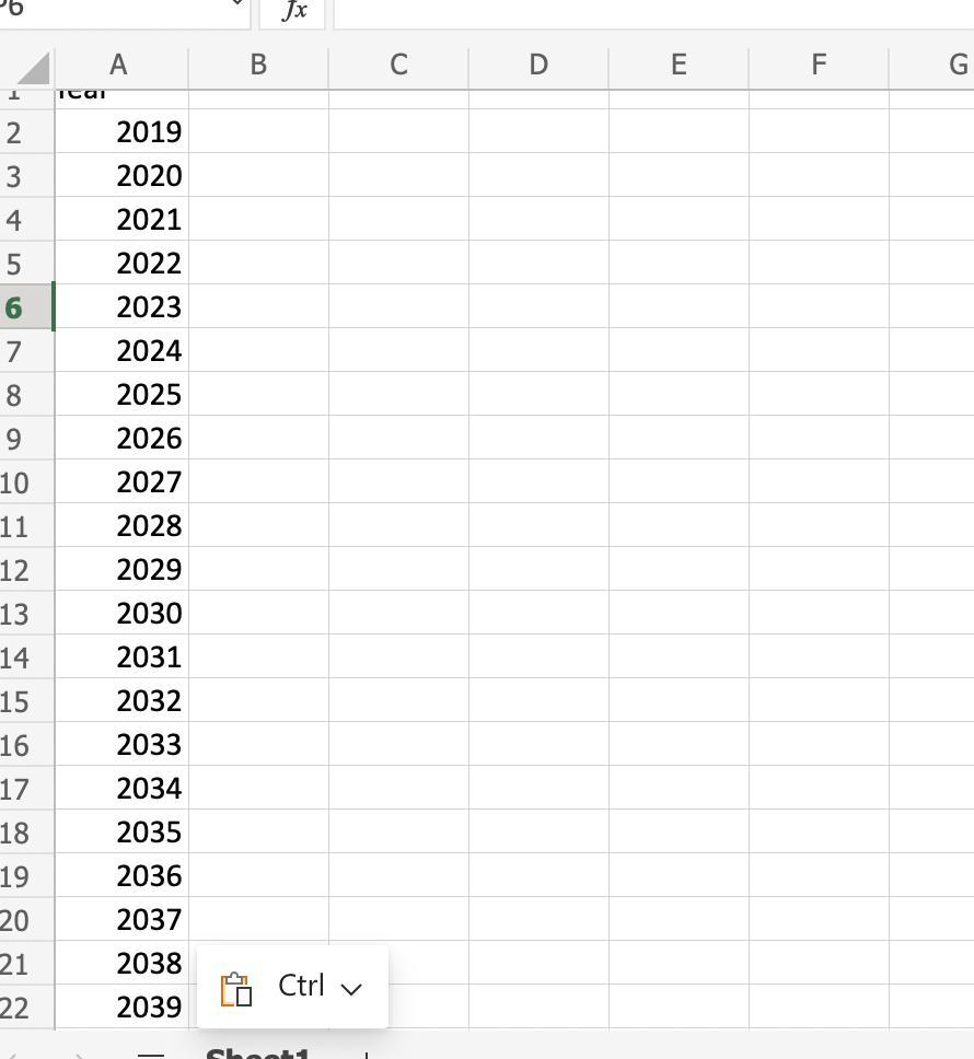 The value of <em>t</em> from 2019 to 2020 can be calculated as,