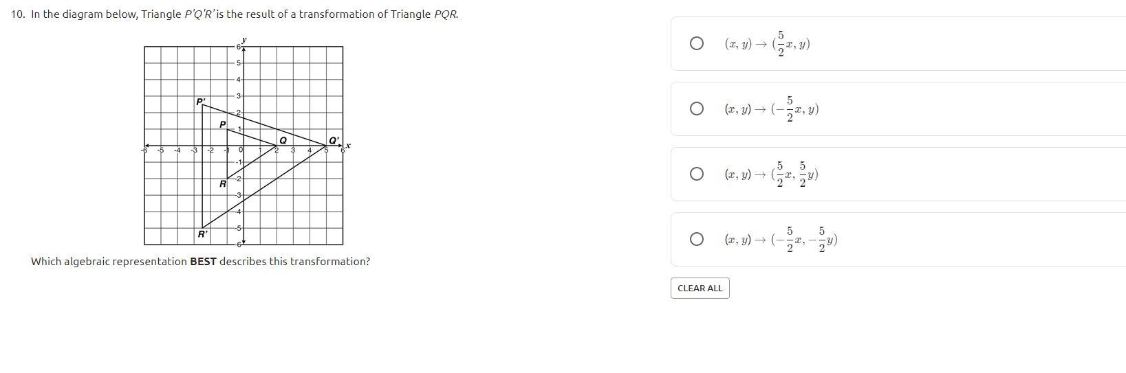An algebraic representation which best describes this transformation is: C. (x, y) → (5x/2, 5y/2).