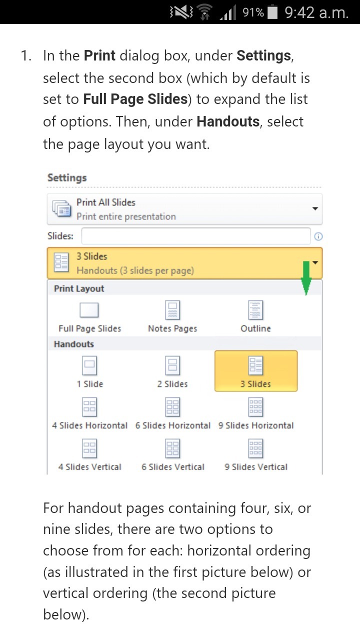 Which print setting enables multiple slides to be printed on one page?