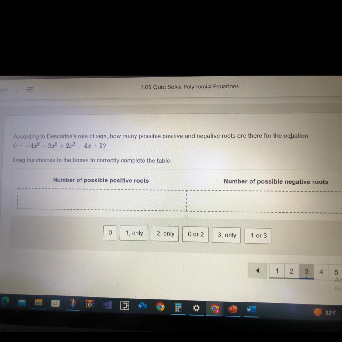 so there is exactly one negative root. (In this case, I don't try to count down by two's, because the first subtraction would give me a negative number.)
