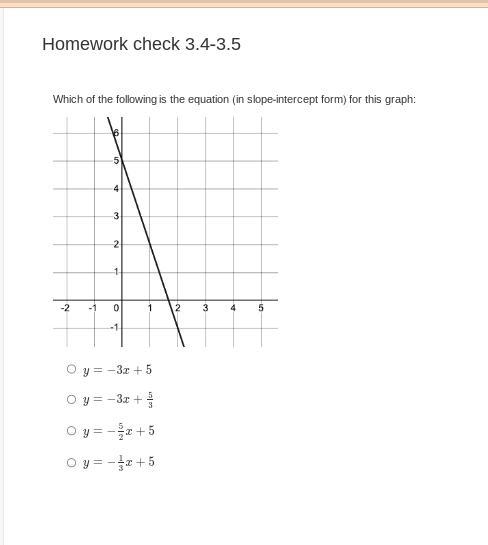 The equation y=-5/2x+5 is the equation of graph. Option C is correct.