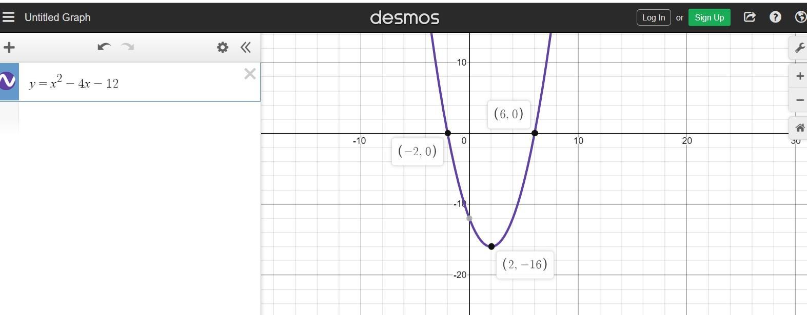 1. Write a function and graph it that has zeros at -2 and 6.2. Make the parabola open up.