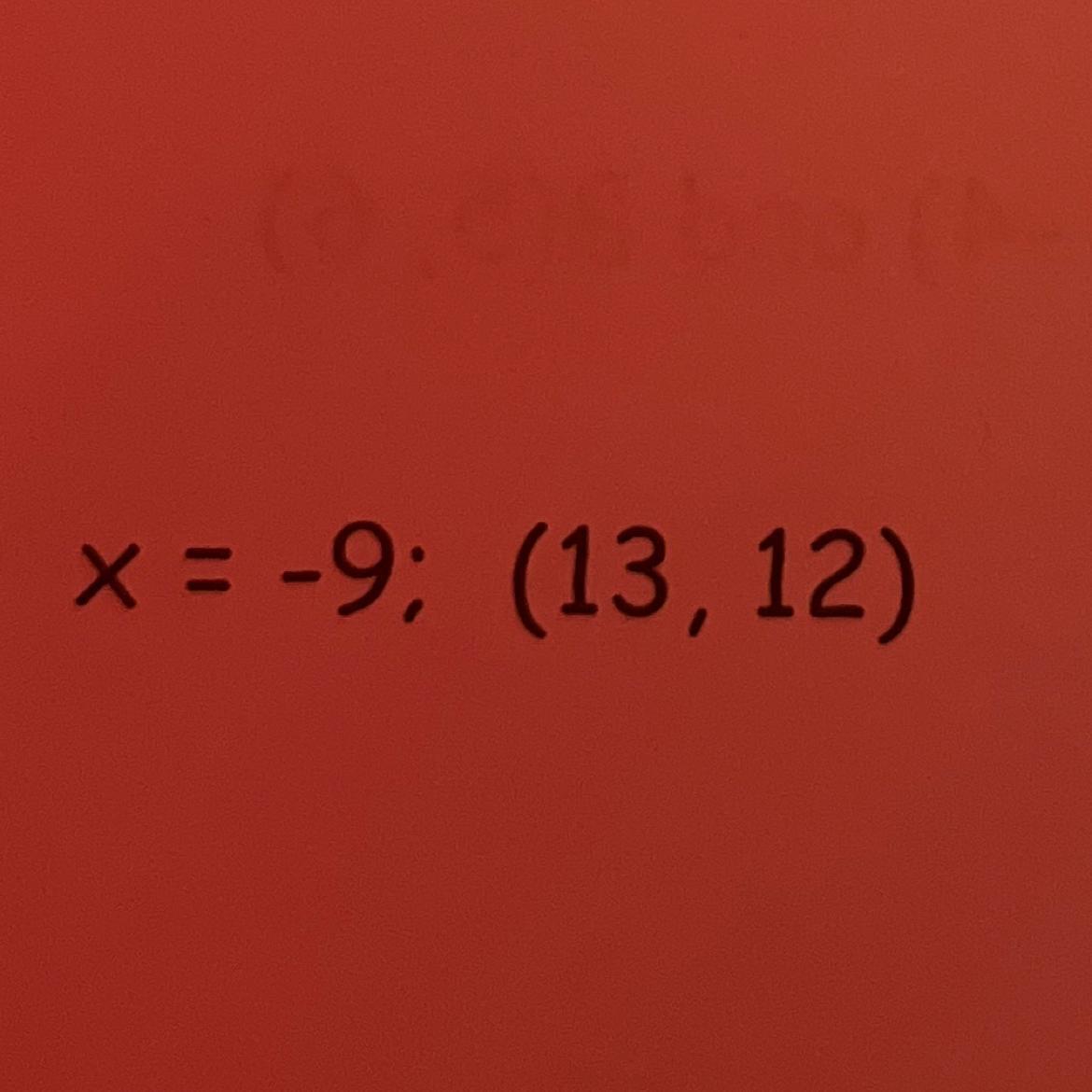 There is a picture that is x=-9 and point as (13,12)