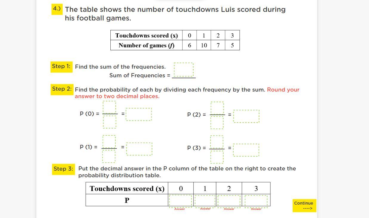 3. Considering the probabilities, the table is completed as follows: 0.21 | 0.36 | 0.25 | 0.18.