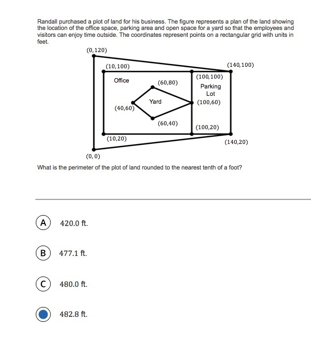 120 ft + 2×141.42 ft + 80 ft = 482.84 ft ≈ 482.8 ft