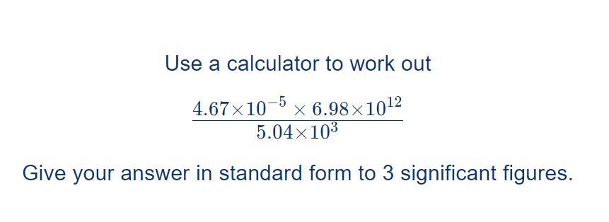 Just type it in a scientific calculator, and if it isn’t already in standard form you count how many times you would move the decimal place to make the number between 1 and 9.999…