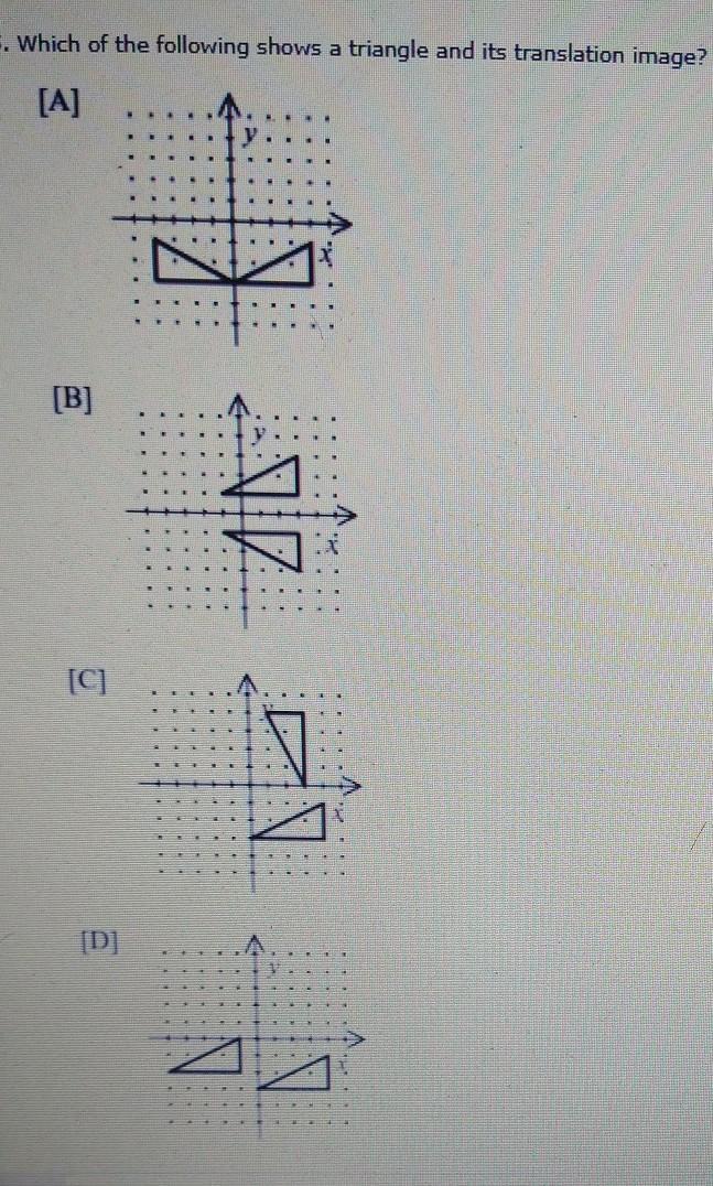 This means the image of the triangle is obtained by moving its coordinates 5 units to the right, and 1 unit down).
