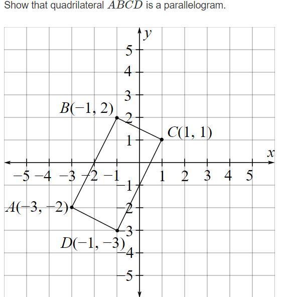 Therefore, since AB and DC have the same slope, they are parallel, so also is AD and BC parallel because they have the same slope, therefore, quadrilateral ABCD is a parallelogram.