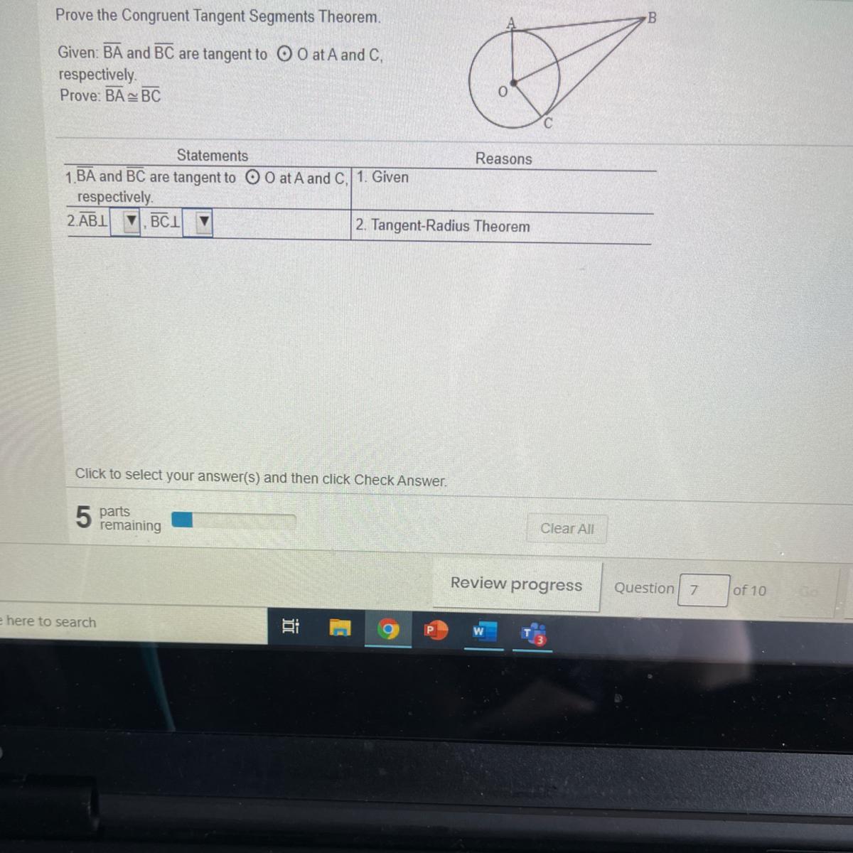 Therefore, segment AB is perpendicular to OA. And segment BC is perpendicular to OC:
