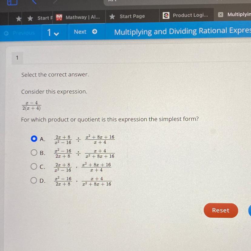 Hence the rational expression that results into x-4/2(x+4) is<em> x²-16/2x+8 * x+4/x²+8x+16</em>