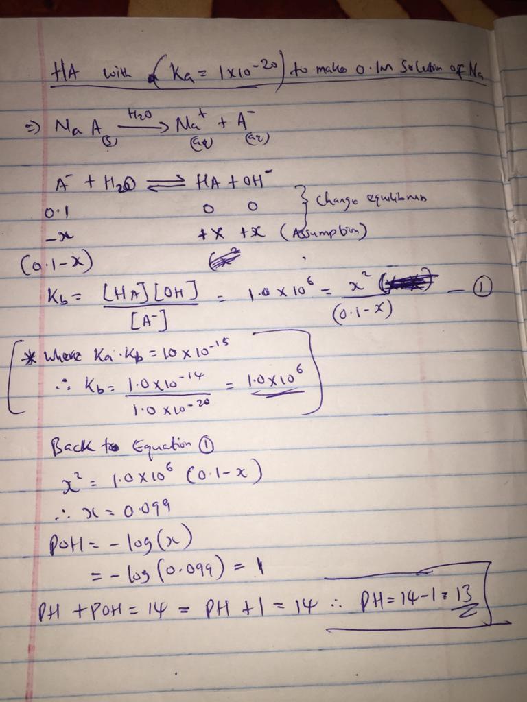 The PH of 0.1M solution of the salt Na = 13