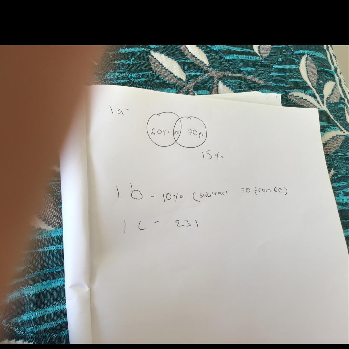 or 100%=70% +15%+ 20% - n( s intersection w)