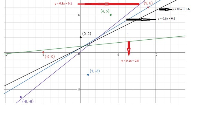 y= 0.6 x + 0.6 →→Option (A), the reason being it passes through a point (9,6).