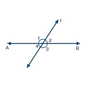 As ∠1 and ∠4 makes straight line t so their sum should be equal to 180°