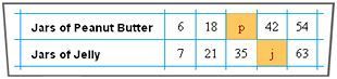 Is a table which shows the relationship between jars of peanut butter and jars of jelly stocked each week at a camp
